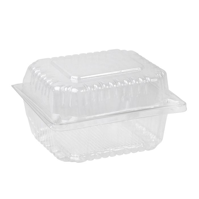 Our round-roll containers have a convenient hinge for opening and closing. They are strong and lightweight, Package your product in these containers which also contain ribbed texture for added strength and to help your product from moving around. Your Food products are on display with clear clarity allowing customers to easily select and purchase.