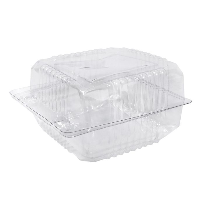 Our clamshell-hinged containers are 100% recyclable. The hinge seals in to lock in your product and the vertical ribs keep your products from moving around and provide extra strength. The clarity allows a clear display for your food product for easy grab and go.