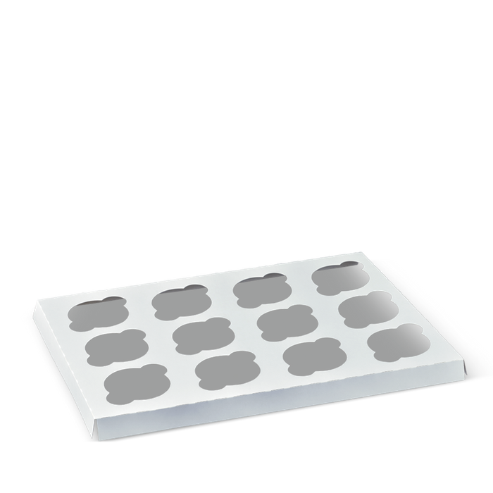The 12 cupcake insert fits into the 12 cupcake window box P9604, and securely holds a dozen cupcakes.