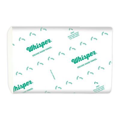 Whisper Deluxe Hand Towel delivers quality at the right price. This towel is sheet for sheet the best value in the range. Maintaining strength and absorbency and best for high use areas. Single sheet dispensing helps reduce waste and promotes maximum hygiene as only the towel dispensed is touched.