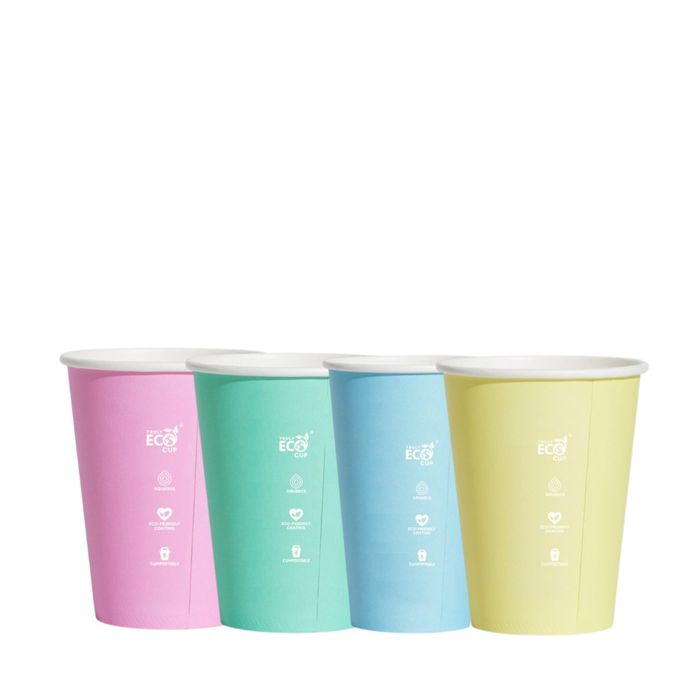 These 12oz Pastel Aqueous Cups are a great way if you're looking to reduce your environmental impact, while also bringing a little colour to your business! These cups are made from plant-based materials. They are coated with a biodegradable inner aqueous lining, which helps prevent moisture from seeping through, and maintains the cup for long periods of time. Please note that the colour proportions found in each box are mix.