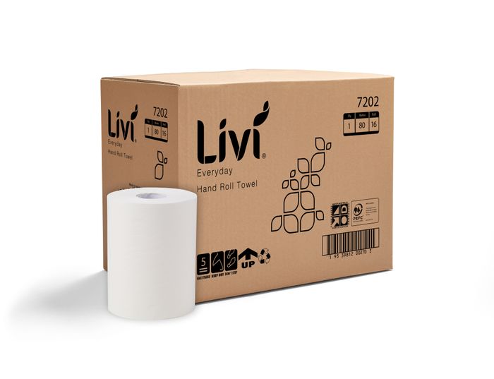 1Ply Livi Economoy Hand towel Roll is made of PEFC Certified paper. There is 80m Per roll.