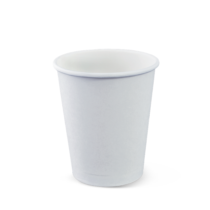 8 Oz White Single-wall Hot Cup is made from paper with PE coating inside. This PE coated paper is food grade, creating a water-resistant layer that helps to keep fresh.  They are a economical hot cup choice, with smooth flat sides for quick and easy branding with stamps or stickers.