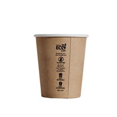 These 8oz Aqueous Single Wall Hot cups are manufactured using a unique water-based dispersion coating certified home compostable to Australian standards. These cups are food safe, odorless, and can be disposed of right in your backyard compost bin!