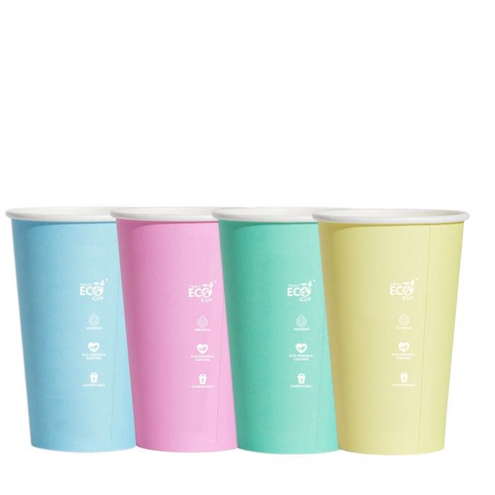 These 16oz Pastel Aqueous Cups are a great way if you're looking to reduce your environmental impact, while also bringing a little colour to your business! These cups are made from plant-based materials. They are coated with a biodegradable inner aqueous lining, which helps prevent moisture from seeping through, and maintains the cup for long periods of time. Please note that the colour proportions found in each box are mix.