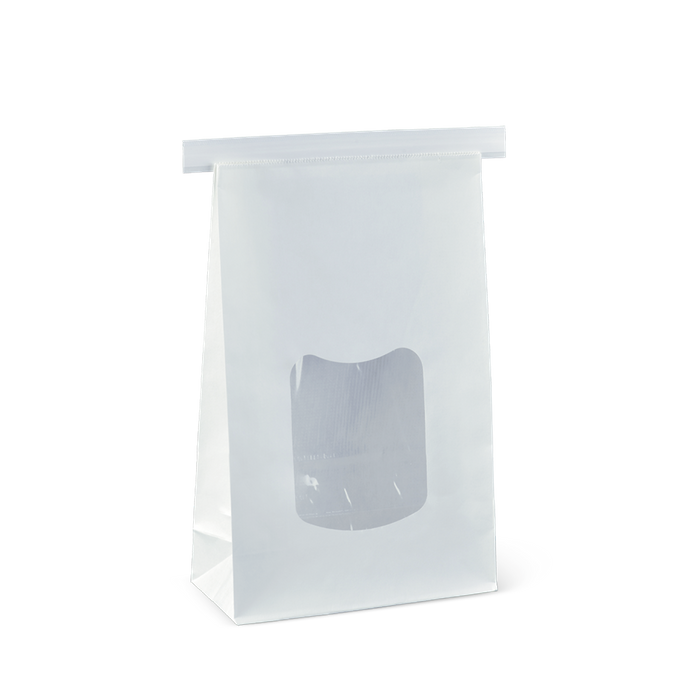 Retail window bags are poly-lined for freshness and feature a window to showcase the contents. They’re ideal for dry foods like coffee beans, loose leaf tea, biscuits, and nuts, and can be sealed with a bar heater. Poly lining is 100% BPA-free. The small tin-tie bag can also be resealed with the tin-tie.