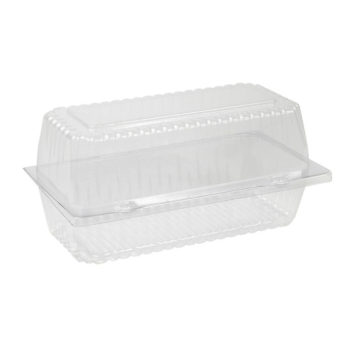 Our high quality bar cake containers which have a convenient hinge for opening and closing. They are strong and lightweight, Package your bakery product in these containers which also contain ribbed texture for added strength and help your product from moving around. Your bakery products are on display with clear clarity allowing customers to easily select and purchase.