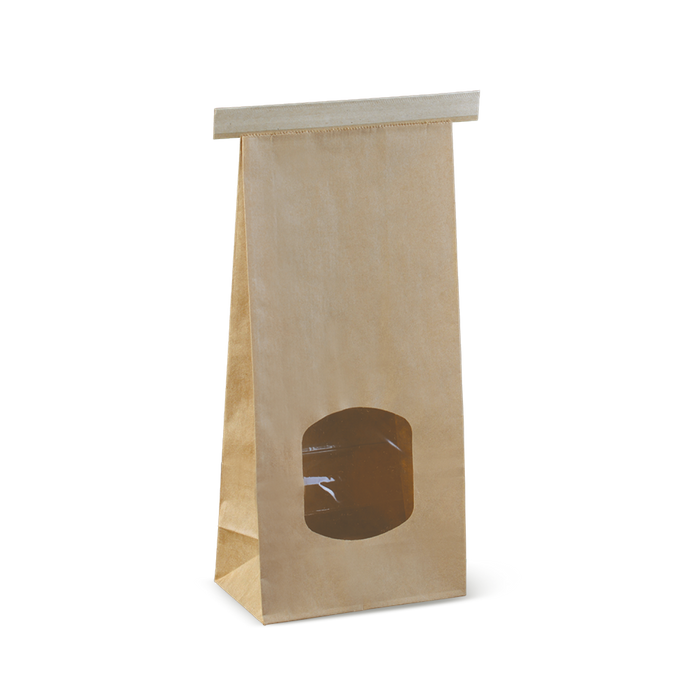 Retail window bags are poly-lined for freshness and feature a window to showcase the contents. They’re ideal for dry foods like coffee beans, loose leaf tea, biscuits, and nuts, and can be sealed with a bar heater. Poly lining is 100% BPA-free. The small tin-tie bag can also be resealed with the tin-tie.